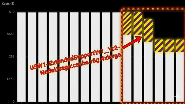As of February 1st, 2026, you might see a line item that includes the text ExtendedSupportYr1_Yr2 something like USW1-ExtendedSupportYr1_Yr2-NodeUsage:cache.r6g.4xlarge snuck in there.